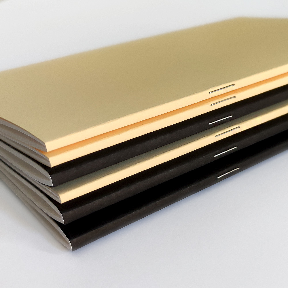 Dieses Notizheft ist aus übrigen Papierresten von uns gefertigt. Das unbedruckte Papier haben wir als Rückendrahtheftung in A4- und A5-Format zusammen geheftet. Für das Notizheft wurde im Inhalt ein 80 g/qm Buchdruckpapier und für den Umschlag ein 250 g/qm farbiges Papier verwendet. Die unbedruckten Seiten ermöglichen eine vielseitige Verwendung. Egal ob zum Malen oder Schreiben, dieses praktische Heft lässt sich leicht mitführen.