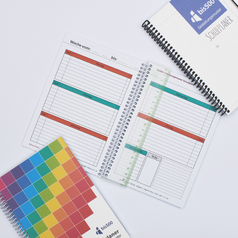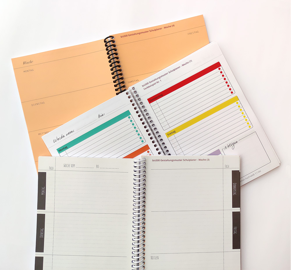 Sie möchten gern vielmehr gebundene Muster neben unserem Schulplaner Gestaltungsmuster sehen? Dann bestellen Sie gern unter der Kategorie Mustermaterial weitere Exemplare. So stellen Sie sich mitunter Ihr persönliches Musterpaket zusammen.