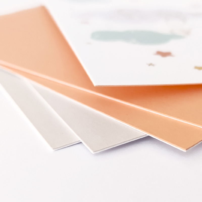 Die Verklebung ermöglicht es, unterschiedlichste Papiere miteinander zu verbinden. Diese zunächst völlig simple Technik fügt unterschiedliche Papierfarben und Oberflächen zusammen. Dadurch erreichen Sie so Effekte und Materialstärken, die in dieser Kombination nur für Sie gefertigt werden. Hinterlassen Sie mit Ihren Visitenkarten oder Einladungen einen bleibenden Eindruck, der nicht nur sichtbar, sondern auch fühlbar ist. Kombinieren Sie Ihre unterschiedlichen Bogen Papier mit unserer Hilfe.